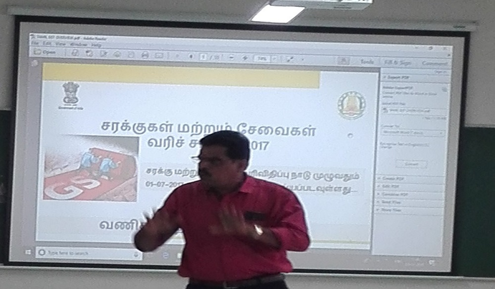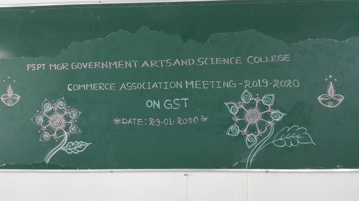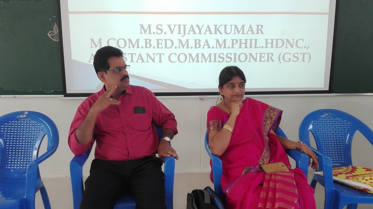 29.01.2020 அன்று வணிகவியல் மன்றத்தின் சார்பாக வணிகவியல் பயிலும் மாணவ-மாணவியர்களுக்கு சரக்கு மற்றும் சேவைகள் வரி (GST) குறித்த விழிப்புணர்வு கூட்டம் நடைபெற்றது. கல்லூரியின் முதல்வர் தே. லெட்சுமி அவர்கள் தலைமையேற்று விழாவினை சிறப்பித்தார்கள். வணிகவியல் துறை தலைவர் முனைவர் மு. திருநாராயணசாமி அவர்கள் வரவேற்புரை வழங்கினார்கள். இக்கூட்டத்தில் மதுரை மண்டல சிறப்பு ஆலோசகர் ஓய்வு பெற்ற உதவி ஆணையர் திரு. M.S விஜயகுமார் அவர்கள் கலந்துகொண்டு சரக்கு மற்றும் சேவைகள் வரி குறித்து சிறப்பாக மாணவ-மாணவிகளுக்கு எளிதில் புரியும்படி மாணவர்களின் சந்தேகங்களுக்கு எளிமையாக விளக்கமளித்தார்கள். இக்கூட்டத்தில் வணிகவியல் பயிலும் சுமார் 150 மாணவ-மாணவிகள் பங்குபெற்று பயன்பெற்றனர். நிகழ்ச்சியின் முடிவில் வணிகவியல் துறையின் கௌரவ விரிவுரையாளர் முனைவர். ம. ராஜசேகர் அவர்கள் நன்றி கூறினார்கள்.