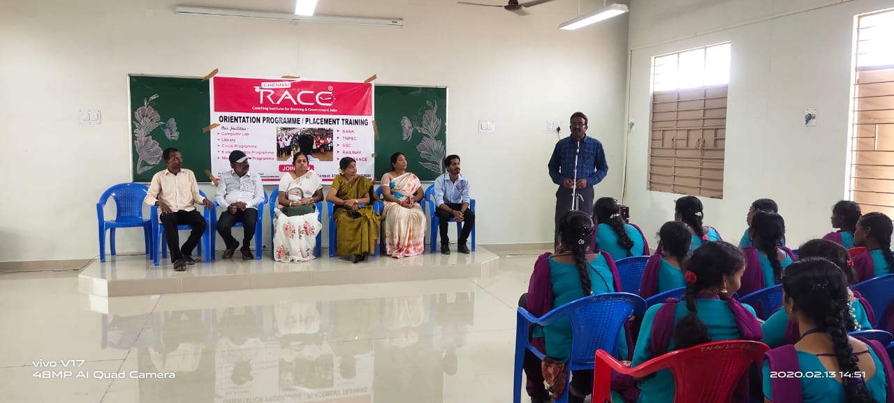 13.02.2020 அன்று வணிகவியல் துறையில் அரசுத் துறை சார்ந்த போட்டித்தேர்வுகளுக்கு தயாராவது எப்படி என்பது குறித்த விழிப்புணர்வு கூட்டம் நடைபெற்றது. இக்கூட்டத்திற்கு கல்லூரி முதல்வர் தே. லெட்சுமி அவர்கள் தலைமை தாங்கினார்கள். வணிகவியல் துறை தலைவர் முனைவர். மு. திருநாராயணசாமி அவர்கள் வரவேற்புரை வழங்கினார்கள். அதில் சென்னை ரேஸ் பயிற்சி நிறுவனம் (RACE COACHING CENTRE) சிதம்பரம் கிளையிலிருந்து கலந்து கொண்டு மாணவ-மாணவிகள் (TNPSC, BANK, POSTAL,RAILWAY) மற்றும் இதர போட்டித்தேர்வுகளை எப்படி எதிர்கொள்வது என்பது பற்றி விரிவாக எடுத்துரைத்தார்கள். போட்டித்தேர்வுகள் குறித்து மாணவ-மாணவிகளின் பல்வேறு சந்தேகங்களுக்கு, மிக எளிதாக விளக்கமளித்தார்கள். இக்கூட்டத்தில் வணிகவியல் துறையில் பயிலும் 150-க்கும் மேற்பட்ட மாணவ-மாணவிகள் கலந்து கொண்டு பயன்பெற்றனர். நிகழ்ச்சியின் முடிவில் வணிகவியல் துறை உதவிப் பேராசிரியர் முனைவர் வே. மகேஸ்வரி அவர்கள் நன்றி கூறினார்கள்.